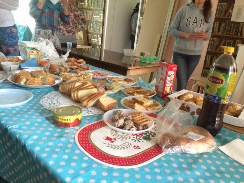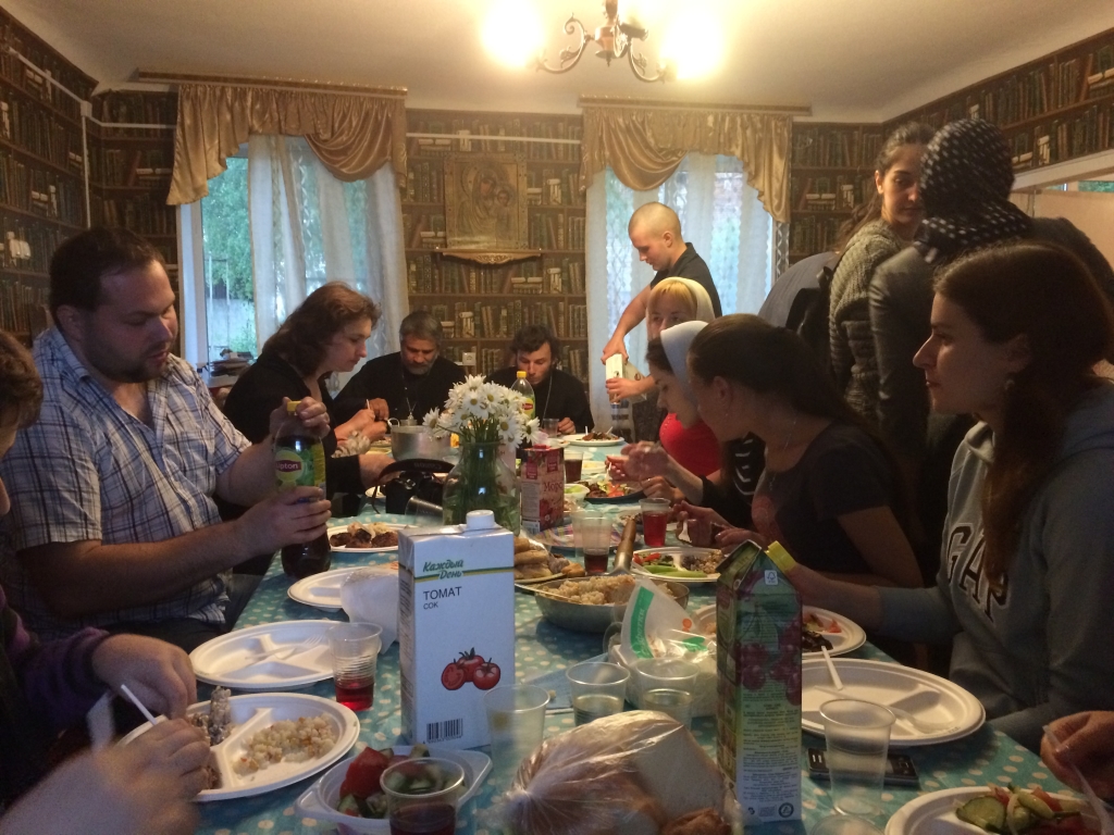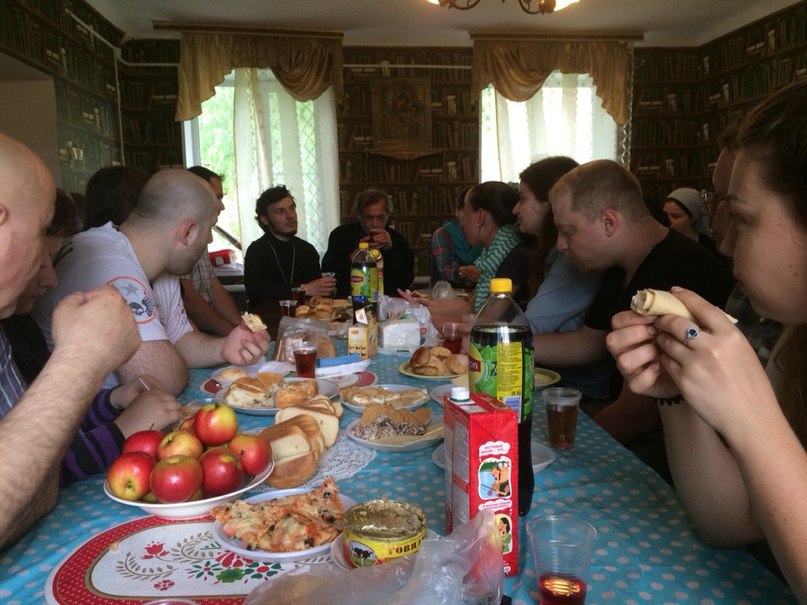 После молебна всех ожидала трапеза. Во время веселого пира мы поднимали стаканчики с соком за то, чтобы наши поездки стали регулярными и продуктивными и становились еще интереснее.