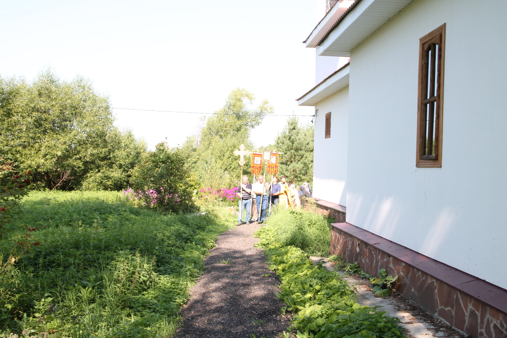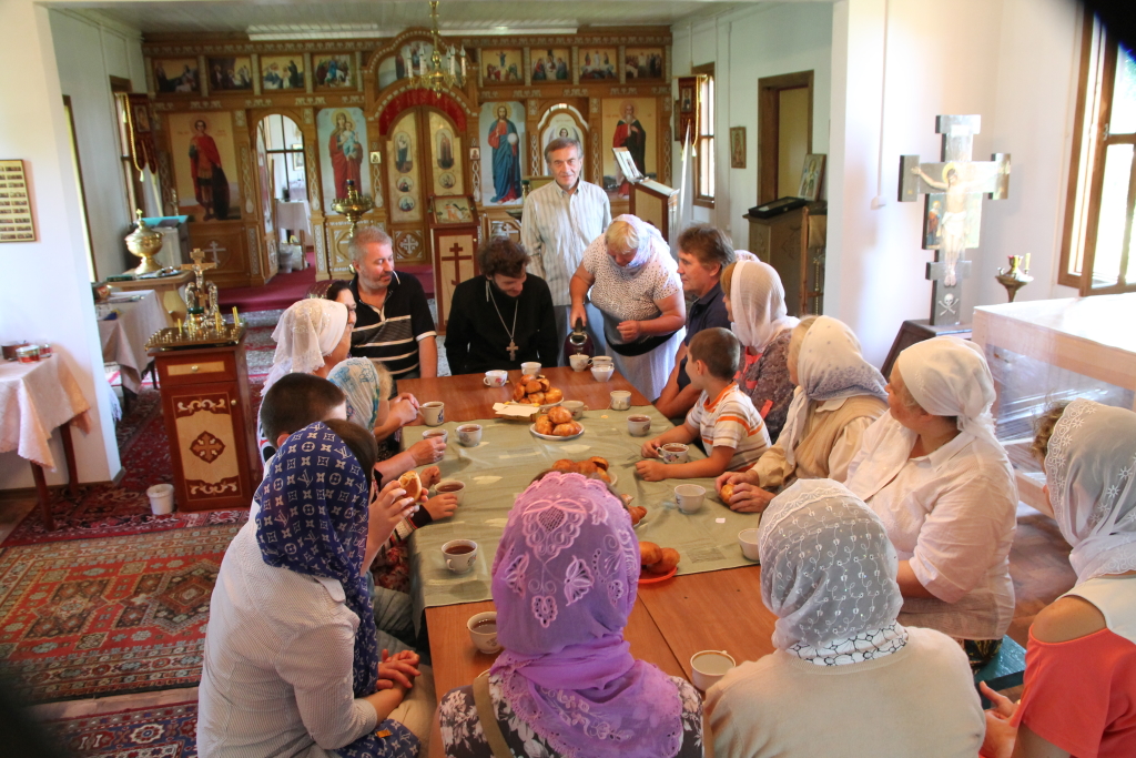 После литургии совершили крестный ход вокруг храма и завершилось все чаепитием.